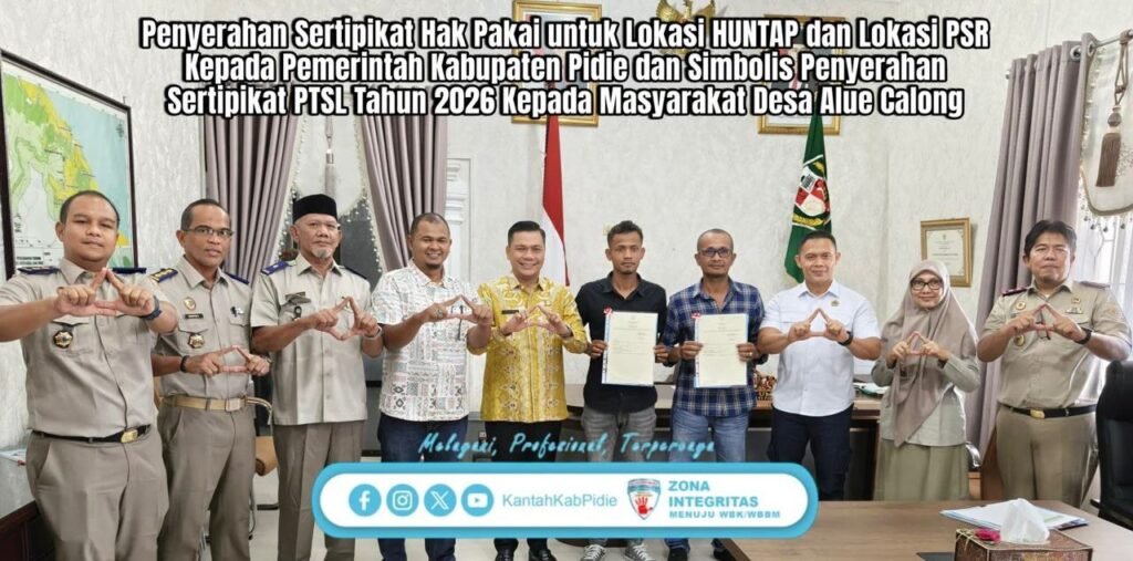 Penyerahan Sertipikat Hak Pakai untuk Lokasi HUNTAP dan Lokasi PSR kepala Pemerintah Kabupaten Pidie Habakamoe Media 2 months ago